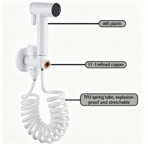 Denne bidetsprøjte er lavet af fødevaresikker ABS-harpiks af høj kvalitet og er bygget til at holde. Det tilbyder enestående slagfasthed, høj temperaturbestandighed og rustsikker ydeevne, hvilket sikrer en hygiejnisk, langtidsholdbar løsning til dit badeværelse, som langt overgår billige plastalternativer.