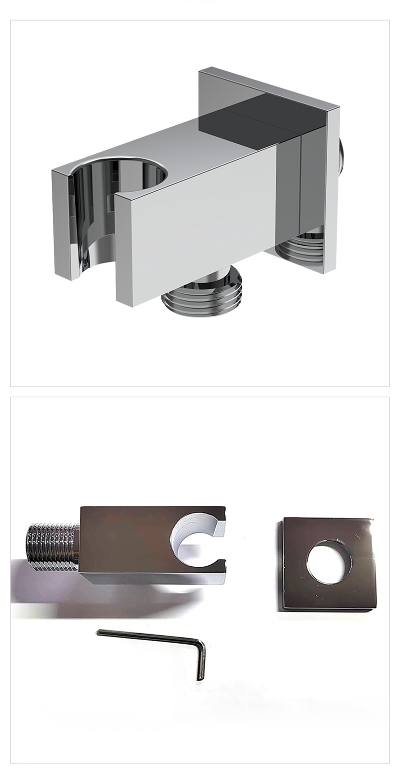 Design og struktur:Kan prale af en slank, minimalistisk firkantet profil med en forstærket U-formet slids til stabil placering af brusehovedet og en standard gevindgrænseflade til sømløs forbindelse til vandforsyningsrør. Det vægmonterede design maksimerer pladseffektiviteten og holder badeværelset ryddeligt og organiseret.