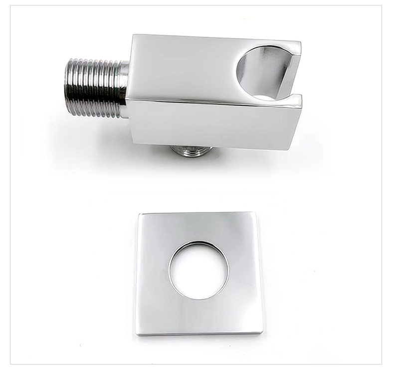 Struktur:Udstyret med en U-formet slids til placering af håndholdte brusehoveder, og en indbygget G1/2 standard vandudløbsgrænseflade på toppen, med en ekstern gevindgrænseflade på siden til tilslutning af vandrør, der realiserer integreret installation af vandforsyning og bruseplacering.