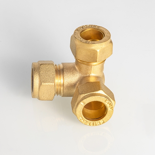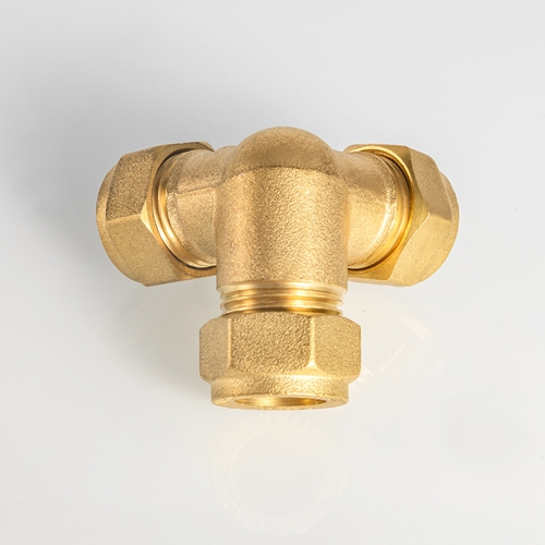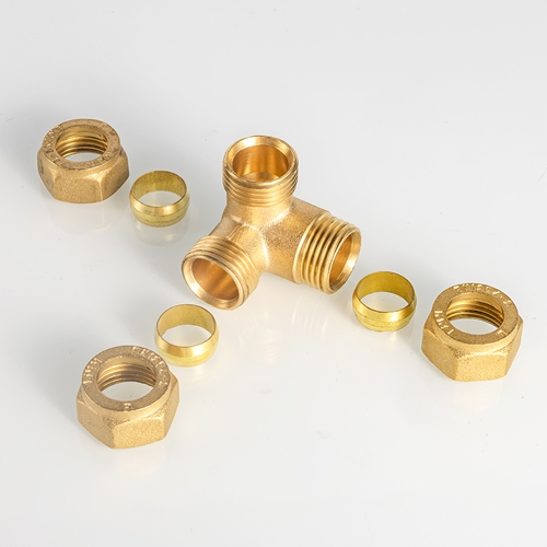 EN1254 Smedet messing kompressionssmedet T-rørfittings Messing Materiale luft Kompressiorør Rørfittingsforbindelse til kobberrør