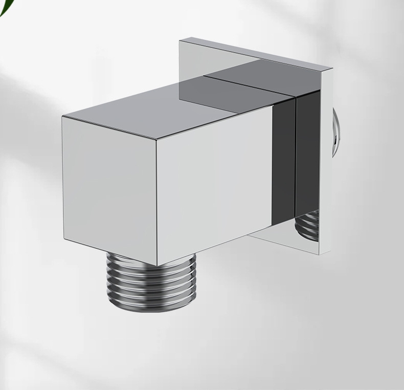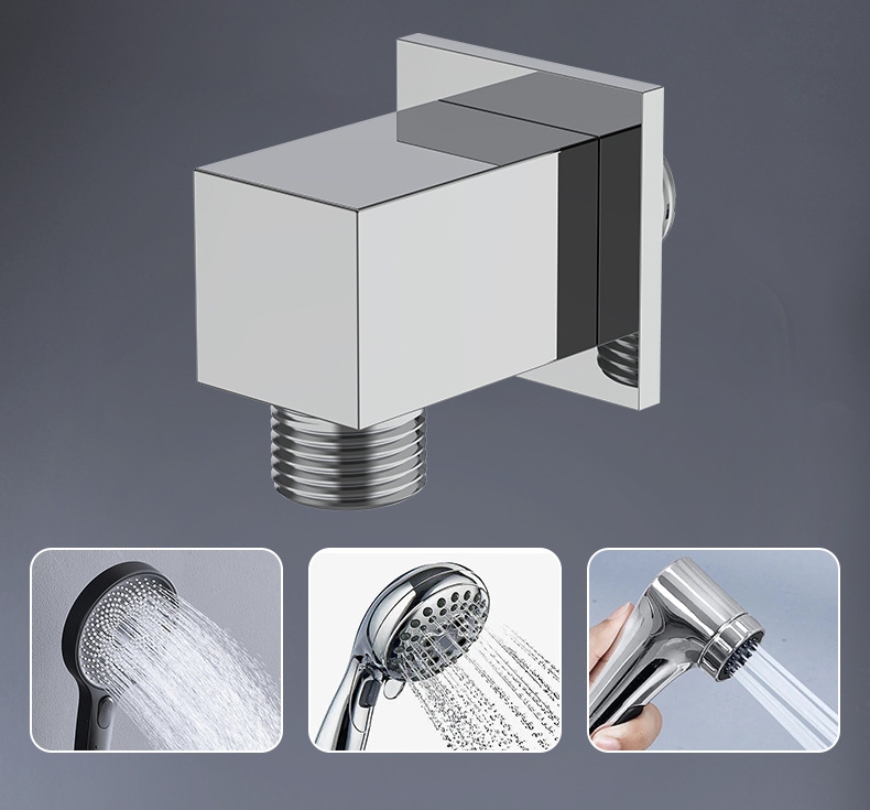 Firkantet vinkelventil i massiv messing med bruseholder, 1/2" lige stopventil til bidetspray og håndbruser, VVS-armatur til badeværelset
