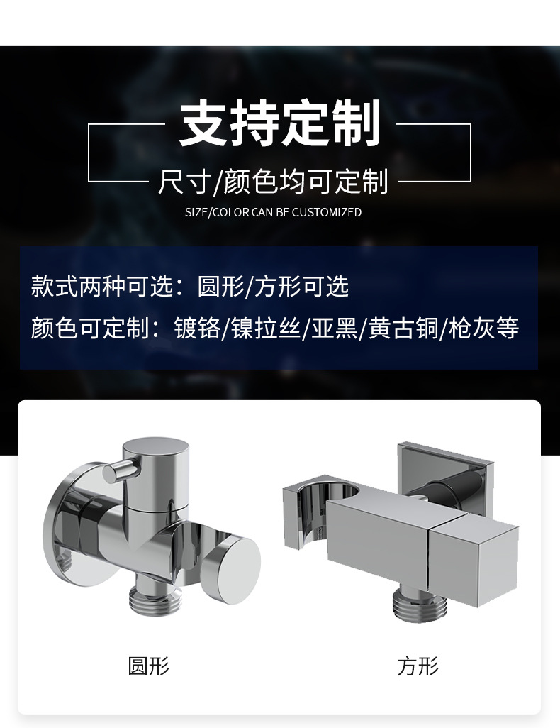 Dens kerneformål er at levere en multifunktionel, lækagesikker og pladsbesparende løsning til installation af håndbruser/bidetsprøjte på badeværelset, integreret vandudløbsforbindelse, albueadapter og beslagstøtte i ét kompakt design. Produktet vedtager en førsteklasses solid messingstruktur: vandvejen, gevindsamlingerne og de bærende dele, der er i direkte kontakt med vand og væg, er fremstillet af højrent messing for at sikre livslang korrosionsbestandighed, rustforebyggelse og ingen vandlækage. Overfladen gennemgår strenge polerings- og forkromningsprocesser, hvilket giver en spejlblank, glat finish, der er modstandsdygtig over for vandpletter, fingeraftryk og nem at rengøre med blot en klud.